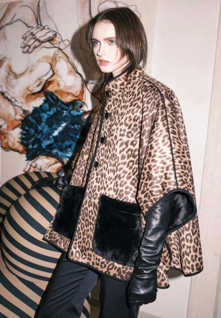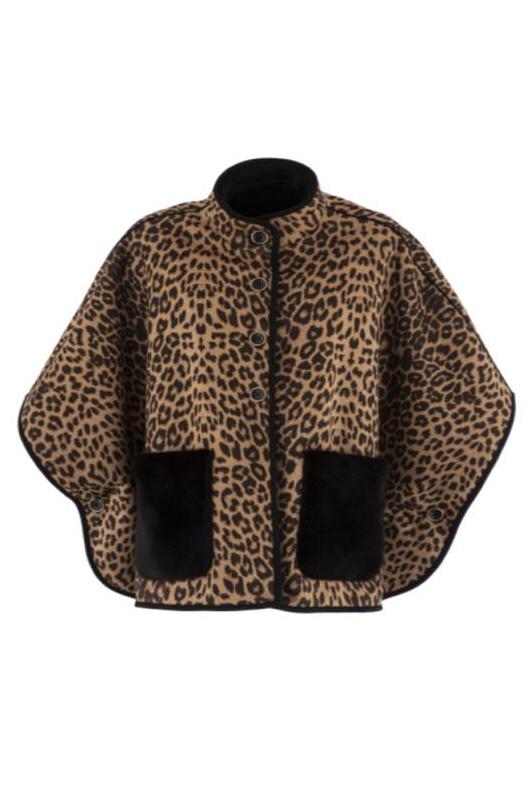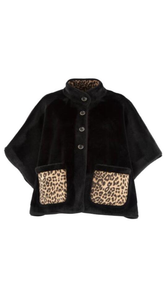 Esta capa reversível une ousadia e elegância num só look. De um lado, o estampado animal print traz atitude e personalidade, enquanto os bolsos em pelo preto acrescentam um toque de sofisticação e textura. Do outro, um acabamento liso e minimalista em preto, perfeito para visuais mais discretos ou para equilibrar coordenados mais arrojados.
